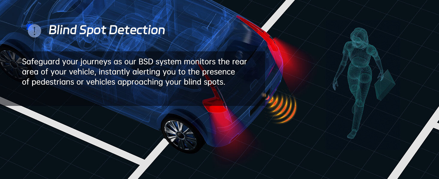 - BSD Algorithm (Blind Spot Detection): With blind spot detection, the Pelsee dash cam monitors areas your mirrors can't see, detecting vehicles in blind spots and alerting you. This helps ensure safer lane changes and prevents potential collisions.