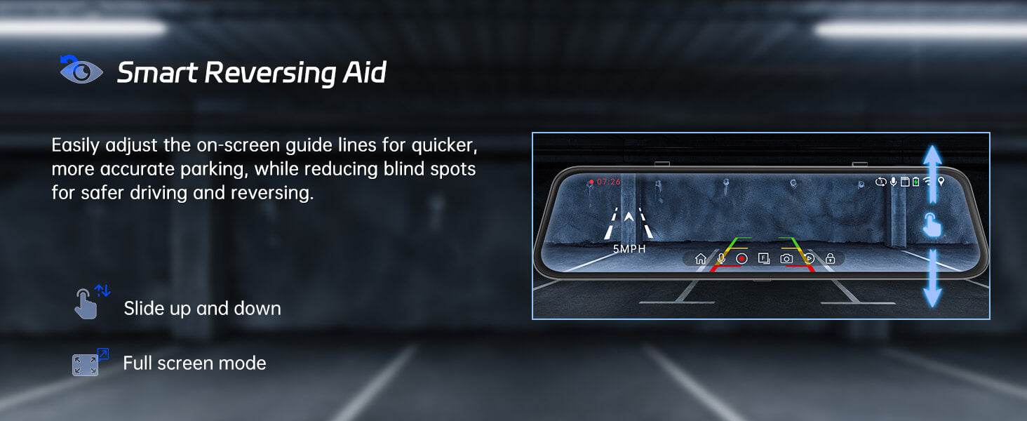 - Smart Tracking with GPS: The rearview camera features GPS, recording vital details like driving routes, real-time speed, and precise locations. Track all this data via the App or GPS Player for valuable evidence in case of accidents.