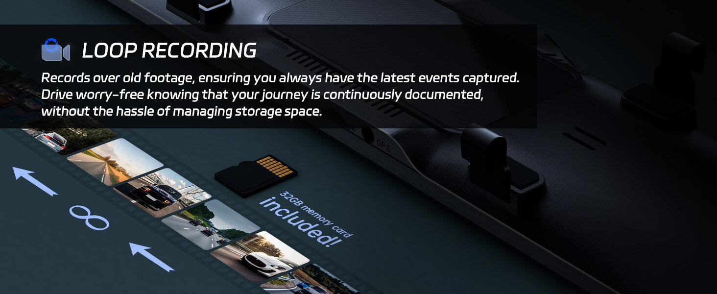 - 32GB TF Card & GPS Tracking: The external GPS accurately records your location and route, providing reliable evidence for accidents. View your driving route on the dedicated GPS player.